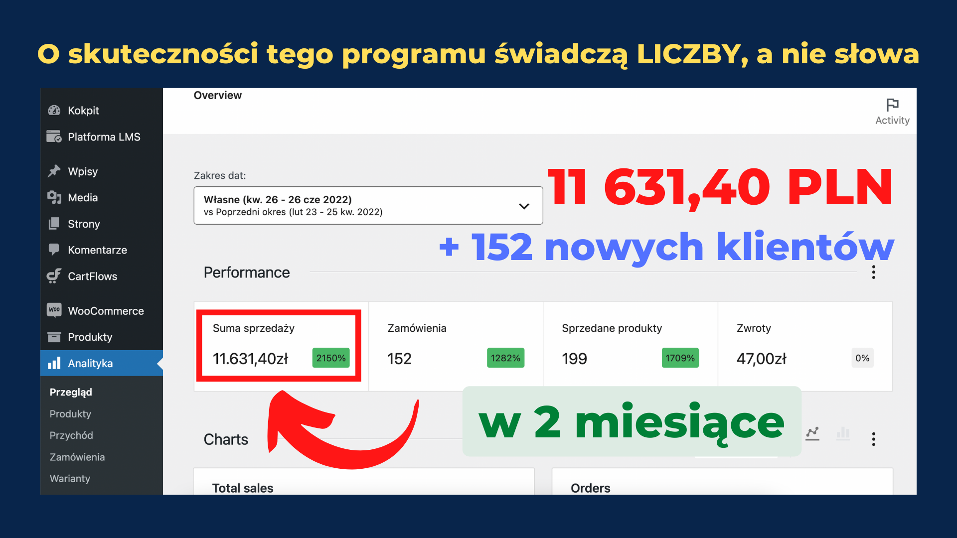 Dodatkowe 11 631,40 PLN i 152 nowych klientów w ciągu 2 miesięcy dzięki automatycznej sprzedaży 2 krótkich kursów online w nowej branży