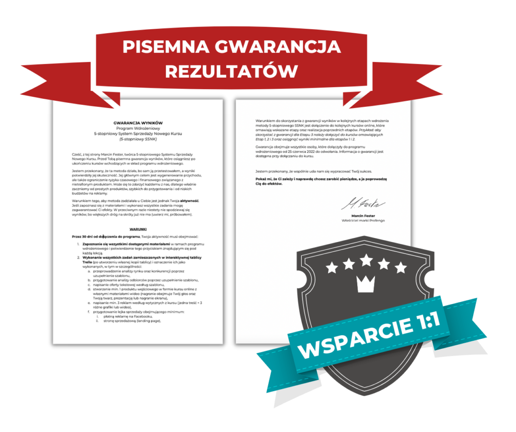 Materiały z kursu online nie wystarczą? Napisz do mnie, a otrzymasz darmowe wsparcie 1:1 na żywo lub zwrot pieniędzy. Wszystko dla Twoich efektów!