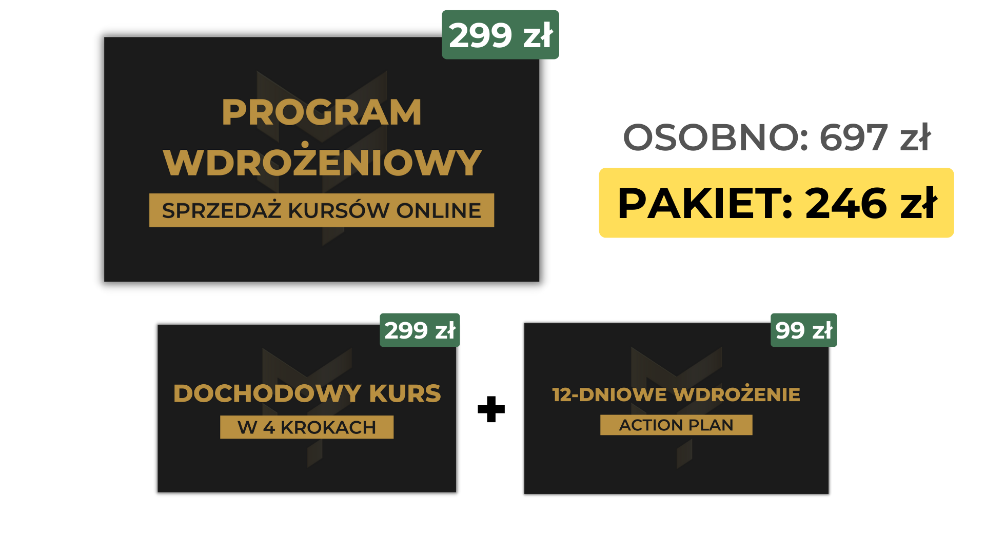 Zobacz, normalnie wszystkie te kursy razem kosztują 697 zł. A Ty możesz je dzisiaj nabyć za jedyne 246 zł.